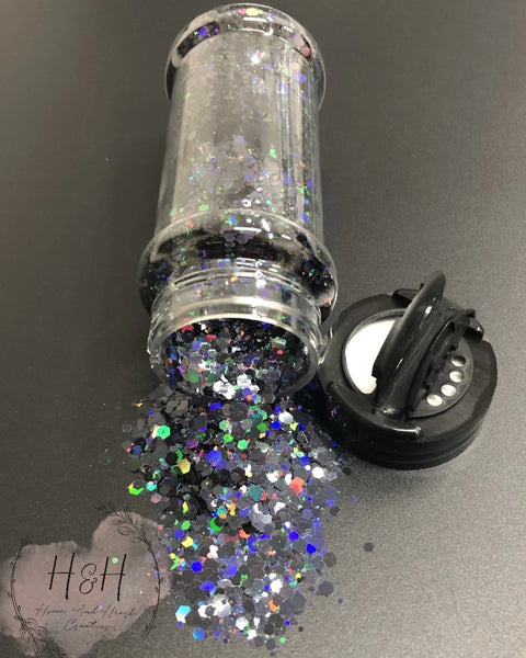 Black Chunky Holographic Glitter 50gram easy poor bottle.