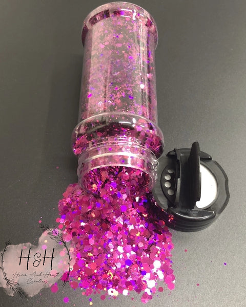 Hot Pink Chunky Holographic Glitter 50gram easy poor bottle.
