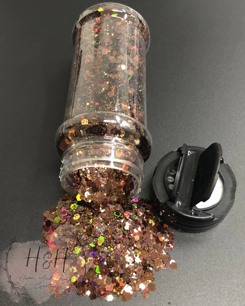 Bronze Chunky Holographic Glitter 50gram easy poor bottle.
