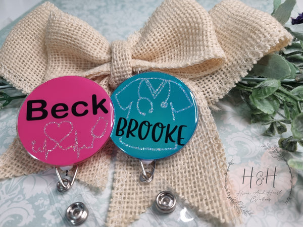 This personalized, lightweight, retractable name badge holder with a clip allows you to personalize your basic wardrobe with a pop of color and glitz while adding a hint of personality and individualization.